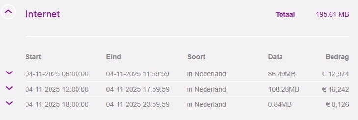 Wat betreft de kosten: het is mogelijk dat het verbruik dat tot de blokkering heeft geleid nog uit de vorige bundelperiode komt, bijvoorbeeld op 3 november. Verbruik dat plaatsvindt vóór de start van je nieuwe bundel (op de 4e) wordt niet uit je nieuwe tegoed gehaald, maar uit de vorige maand. Als je daar al door je MB’s heen was, kunnen extra kosten ontstaan.